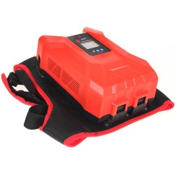 Kit batterie sac à dos + chargeur 50,4 V - 18ALa batterie Li-Ion est équipée d'un porte-batterie léger et résistant, garantissant une liberté de mouvement maximale lors des opérations de récolte. Le poids des batteries et du sac à dos, d'environ 5,2 kg au total, est réparti de manière à ce que l'opérateur ne ressente aucune fatigue.